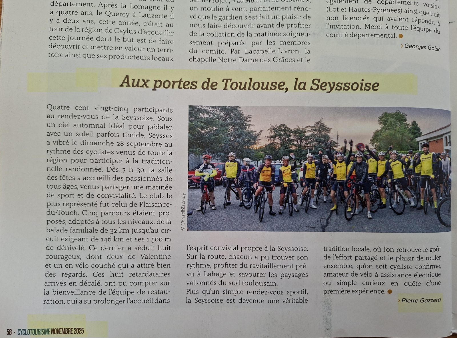 Sous un ciel automnal idéal pour pédaler, malgré un soleil parfois timide, Seysses a vibré ce dimanche 28 septembre 2025 au rythme des cyclistes venus de toute la région pour participer à la traditionnelle randonnée "La Seyssoise"