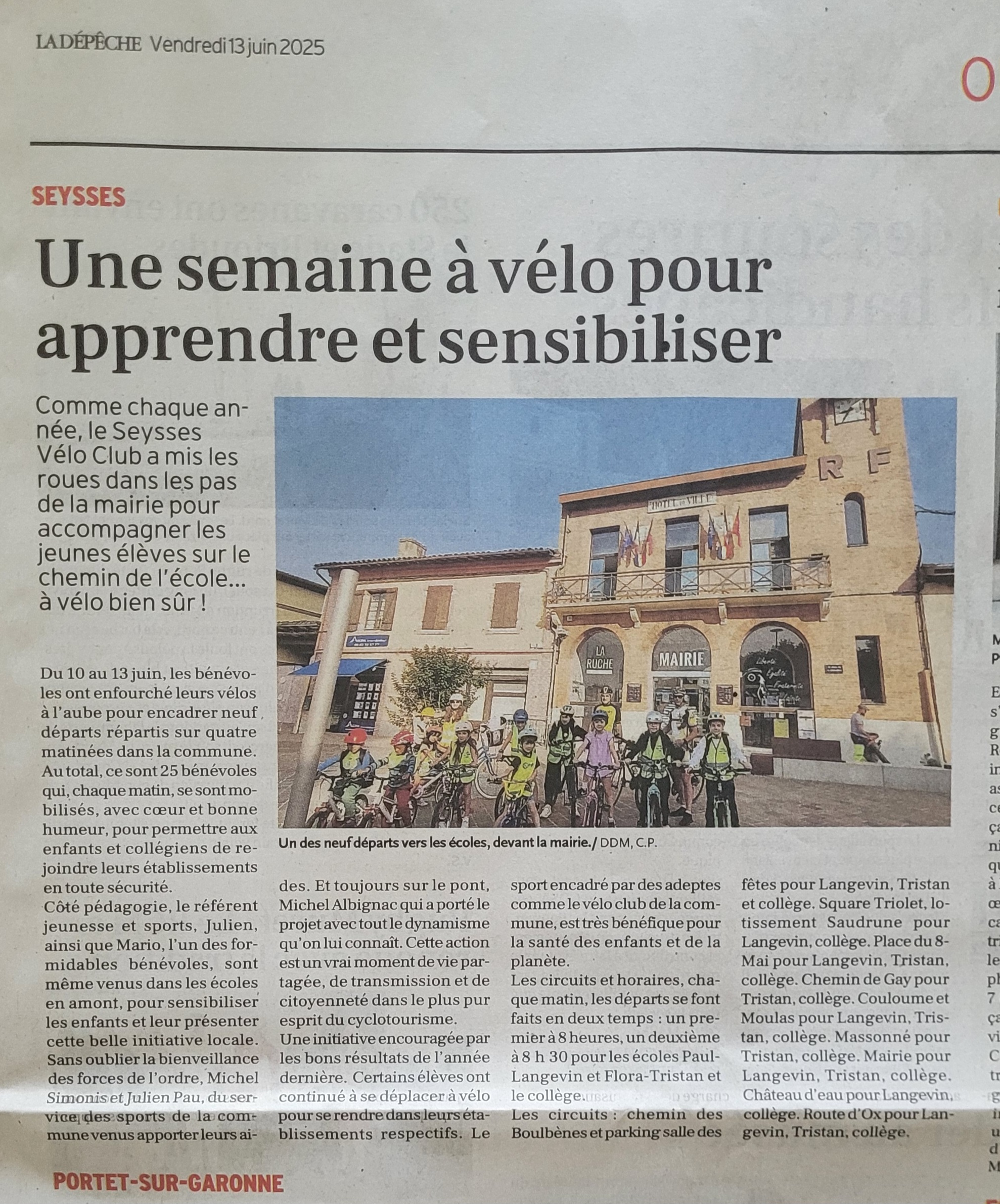 Du 10 au 13 juin, nos bénévoles enfourchent leurs vélos à l’aube pour encadrer neuf départs répartis sur quatre matinées dans la commune. Merci à eux.